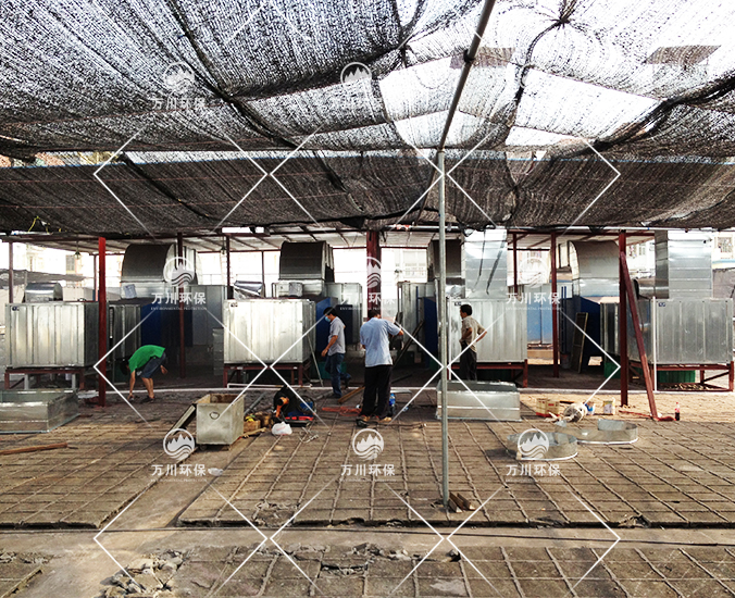 自動噴涂線包括了噴槍及控制裝置,除塵裝置,水簾柜,IR爐,無塵供風裝置以及輸送裝置等。自動噴涂線空間大,產生的廢氣量大,含漆粉、三苯污染物。萬川環保生產的臥式噴淋塔,一次性處理風量大,停留時間長,除塵效率高。