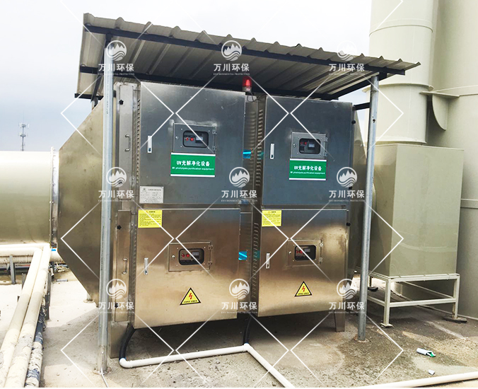 由于廢氣中含有一定的顆粒物,因此廢氣首先進(jìn)到噴淋塔在進(jìn)一步除去顆粒物和水溶性物質(zhì),而后進(jìn)入到除霧器,過濾未完全凈化水分,而后進(jìn)入UV光氧凈化器,最后再進(jìn)行活性炭吸附裝置,該法具有處理效果高,運(yùn)行穩(wěn)定優(yōu)點。